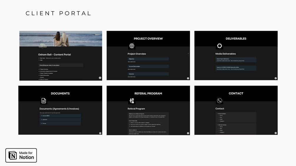 - Notion-based Client Portal for streamlined communication and file sharing.