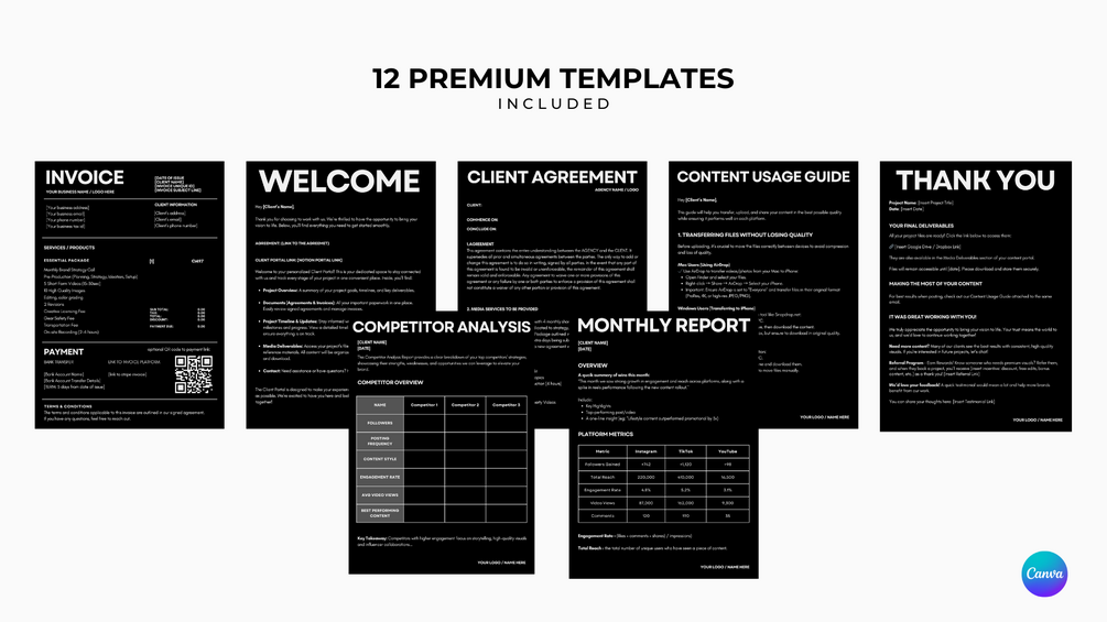 - Professional invoice template (Canva) to maintain a polished brand image.