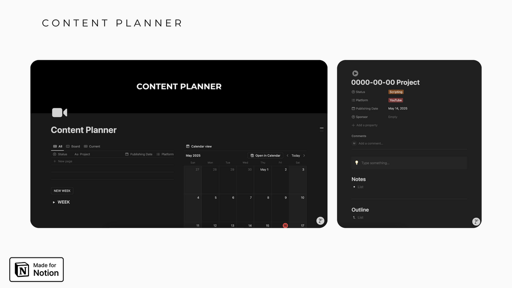 - Content Planner (A clean and simple planner to organize, plan, and manage content—for yourself or your clients)